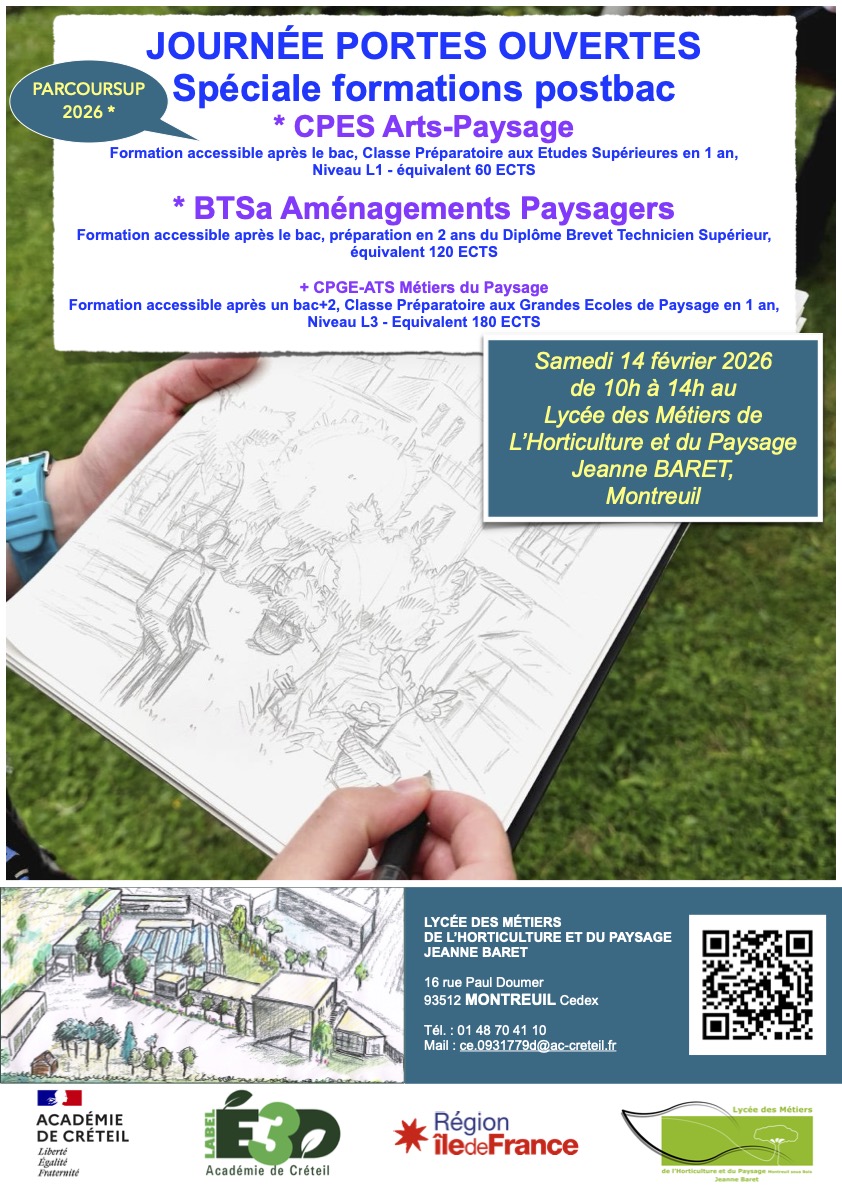 CPES Arts-Paysage, CPGE-ATS Métiers du Paysage, BTSa Aménagements Paysagers du lycée Jeanne BARET